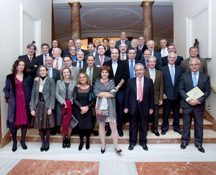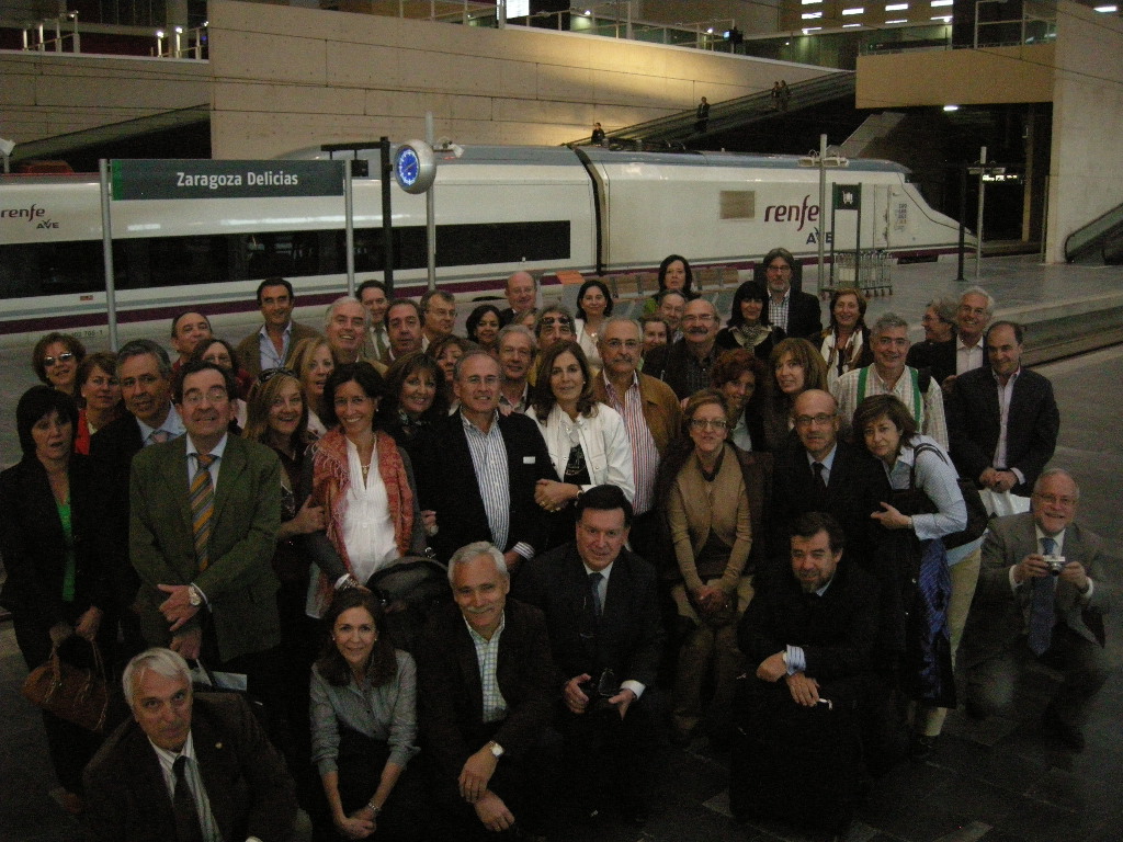 Los pasados 4 y 5 abril se desarrolló con un gran éxito la Visita a las Obras de la Expo08 en Zaragoza. Un total de 67 personas entre compañeros y cónyuges (ver lista de asistentes), participaron en la Visita que recorrió los edificios más significativos de la Expo. En el recorrido se visitaron la Torre del Agua, el Palacio de Congresos, y el Acuario, así como los dos puentes, el del Tercer Milenio y el Pabellón Puente, bajo el que se hizo la foto oficial del viaje. (descarga fichero de gran resolución). La organización, bajo la dirección de Rafael López Guarga fue impecable, contó con el apoyo y patrocinio de las más importantes empresas que construyen la Expo, Dragados, FCC, Sacyr, y OHL, e incluyó una cena en la interesantísima Casa Montal, y una almuerzo final de despedida en el restaurante La Mar, en la que se brindó por el mejor desarrollo de la Expo08 a partir de su inauguración el próximo 14 junio.