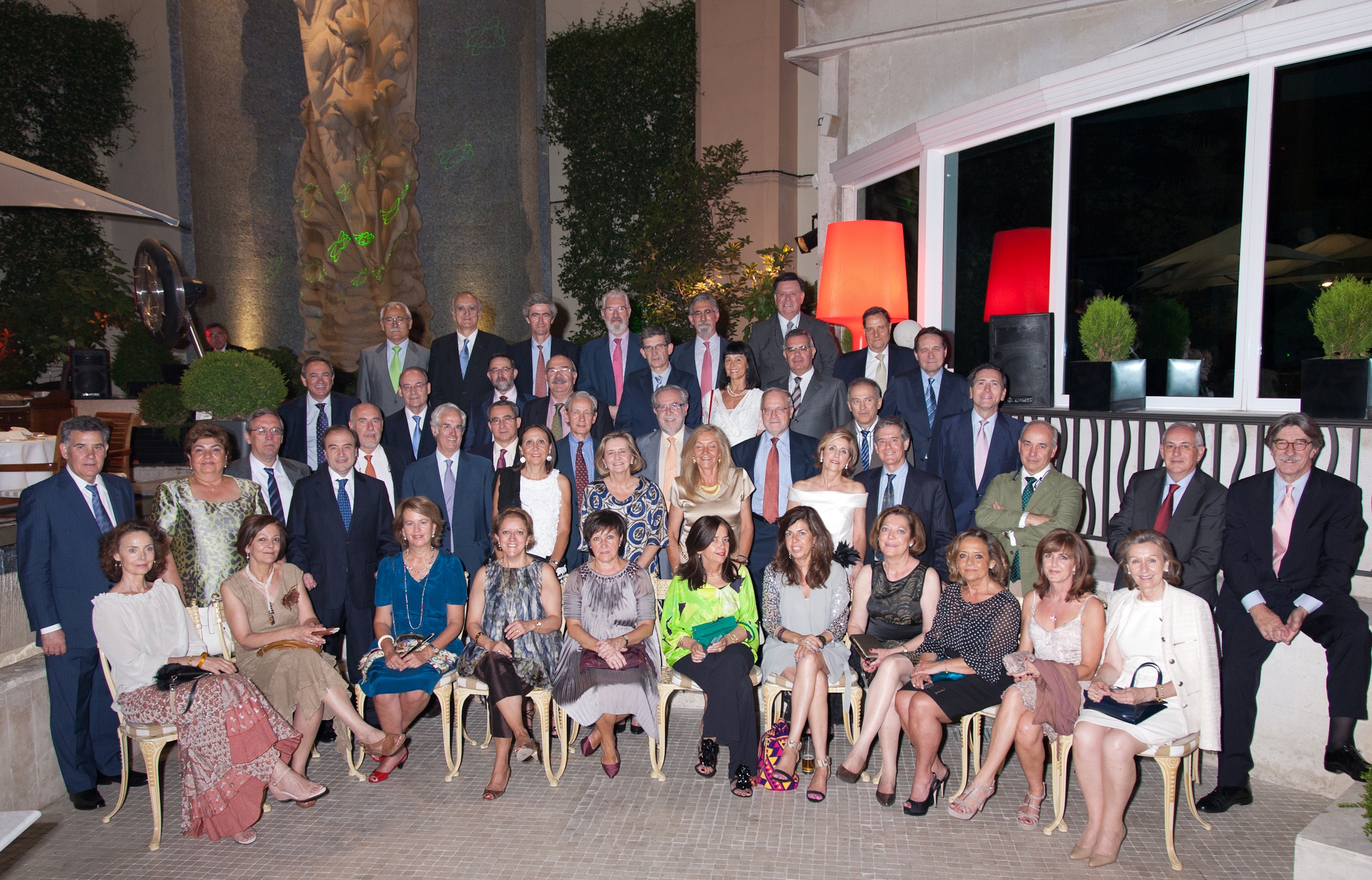 Los Actos Centrales del XXXV Aniversario de la Promoción se celebraron el viernes 22 de Junio 2012. Por la tarde se celebró en la Escuela de Caminos primero, una Misa de Recuerdo en la Capilla, después se tomó la ya tradicional foto de grupo en el vestíbulo, y, finalmente en la Sala de Profesores se celebró el Acto Académico (ver fotos) en el que, moderado por Javier Anitua, participaron Agustín Sánchez Arcilla, Ventura Bengoechea y Javier Cos. Por la noche, en el Hotel Intercontinental se celebró la Cena del XXXV Aniversario que congregó a un buen número de compañeros y sus parejas (ver fotos). Se entregó un nuevo metacrilato conmemorativo, y todos pudieron disfrutar del baile hasta la madrugada. Los asistentes habían posado previamente en el jardín para la foto de familia. (Descarga fichero alta resolución). Un grupo de compañeros celebraron el aniversario aquella misma noche en la boda de Miguel, hijo de Ramón Castillo. Ver foto.