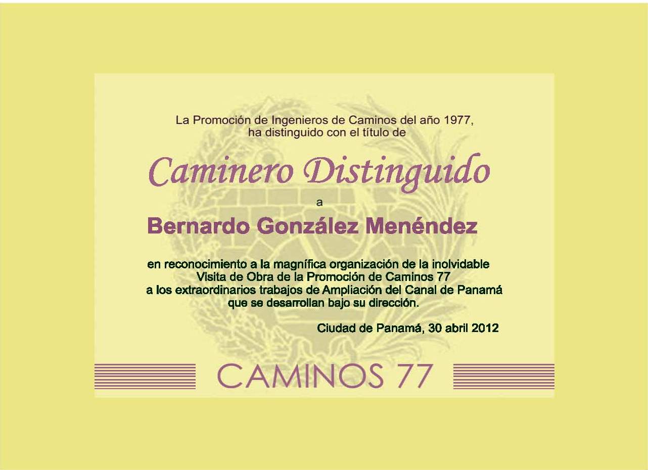 La semana pasada se ha celebrado el Viaje Anual de la Promoción que en esta ocasión y con motivo del XXXV Aniversario ha llegado a Panamá y Cartagena de Indias. El grupo, integrado por 48 personas. (ver lista asistentes), fue recibido por Sacyr en las impresionantes obras de Ampliación del Canal de Panamá, dirigidas por nuestro compañero de promoción Bernardo González Menéndez, a quién se entregó el Título de Caminero Distinguido Ver Diploma, y también por FCC en las obras de construcción de la Línea 1 del Metro de Panamá, dónde se conoció a un magnífico equipo de ingenieros españoles encargados de las obras que tiene allí en marcha. También hubo tiempo para el turismo, y para disfrutar de playa, dónde se tomó la acostumbrada foto de grupo. (Descarga fichero alta resolución)