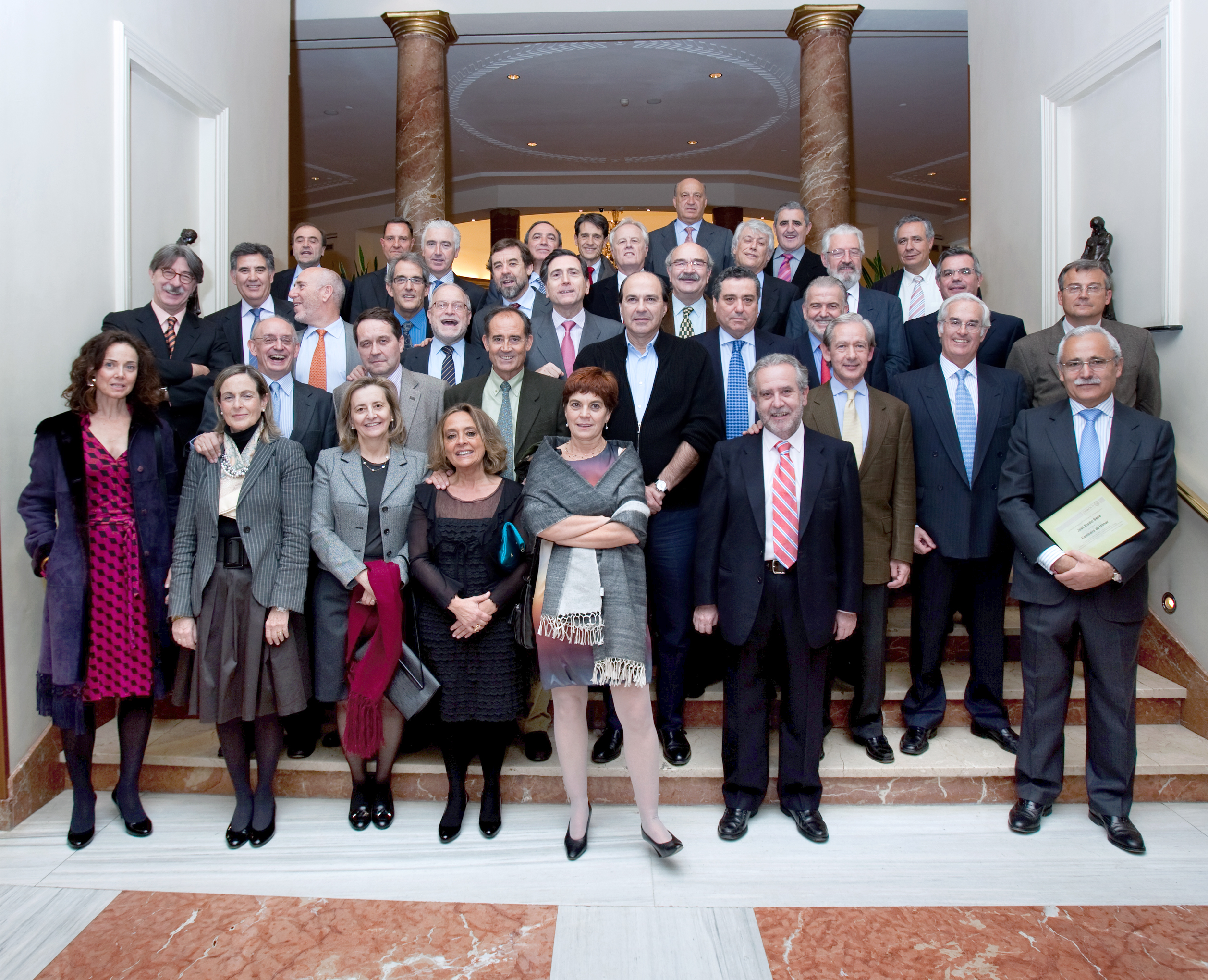 Se celebró anoche la Cena 2008 de la Promoción en el Hotel Intercontinental. El cambio de hotel desde el que ha venido acogiendo la Cena en sus últimos años fue muy bien acogido. El grupo posó para la tradicional foto.(Descarga fichero gran resolución) En el transcurso de la Cena se anunció la concesión este año de la distinción de Caminero de Honor a Jose Eladio Seco, que en los primeros años de esta década ocupó la Presidencia de Aena, el ente nacional de Aeropuertos y Navegación Aérea.