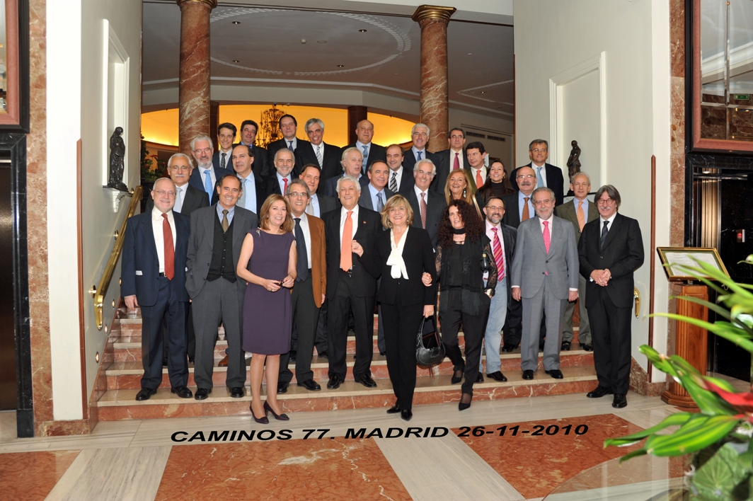 El pasado viernes se celebró en el hotel Intercontinental la Cena Anual de la Promoción de Caminos 77. Se anunció el nombramiento de José Ramón Jiménez Iglesias, como nuevo Caminero de Honor 2012 y se le entregó el correspondiente diploma. Fue presentado por Eugenio Gracia, Juan Luis López Cardenete y Eduardo Vidal (Ver texto). Los asistentes disfrutaron enormemente del encuentro y, después de la tradicional foto de grupo , (Descarga fichero alta resolución), quedaron emplazados para el viaje de abril que se anunció será a Córdoba. Ver galería fotográfica.