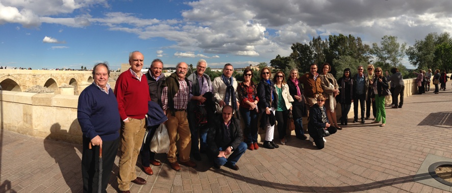 El pasado fin de semana se ha celebrado el Viaje Anual de la Promoción, que este año nos ha llevado a Córdoba. En la organización de la cita ha participado muy activamente nuestro compañero de promoción allí David Escribano, nombrado con este motivo Caminero Distinguido Ver Diploma. Al grupo de viajeros (ver lista asistentes). se han unido también nuestros otros compañeros de la ciudad, Agustín Pastor y Miguel Galisteo. Y han fallado por compromisos anteriores Rafael Vigueras y Santiago García Cabrera, también compañeros del 77 residiendo en Córdoba. Las visitas con guía profesional fueron tremendamente instructivas y los patios en plena flor han lucido, como cabía esperar, preciosos. El grupo pudo además hacer una visita técnica al puente de Abbas Ibn Firnas proyectado por Jose Luis Manzanares Japón. foto de grupo (Descarga fichero alta resolución.