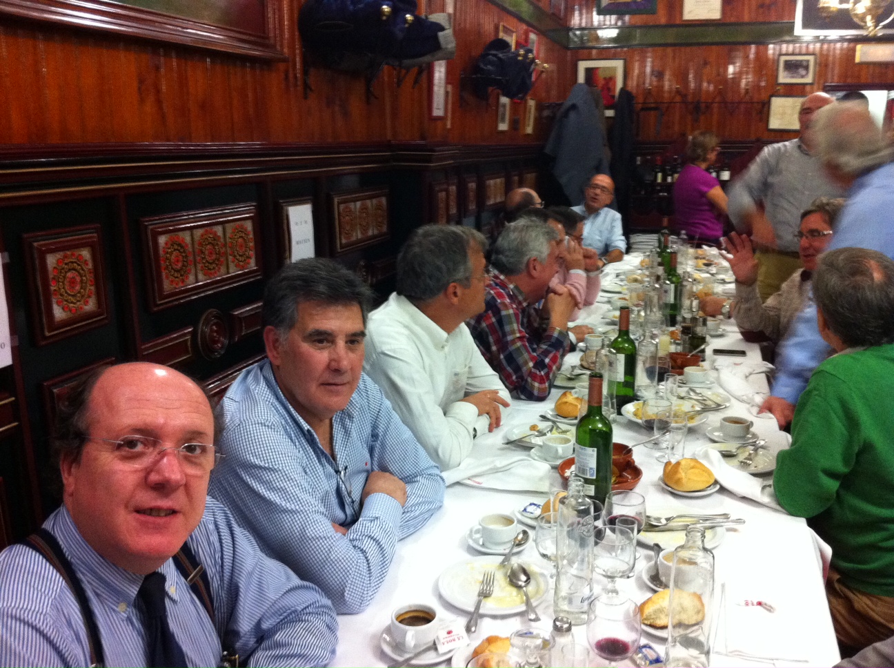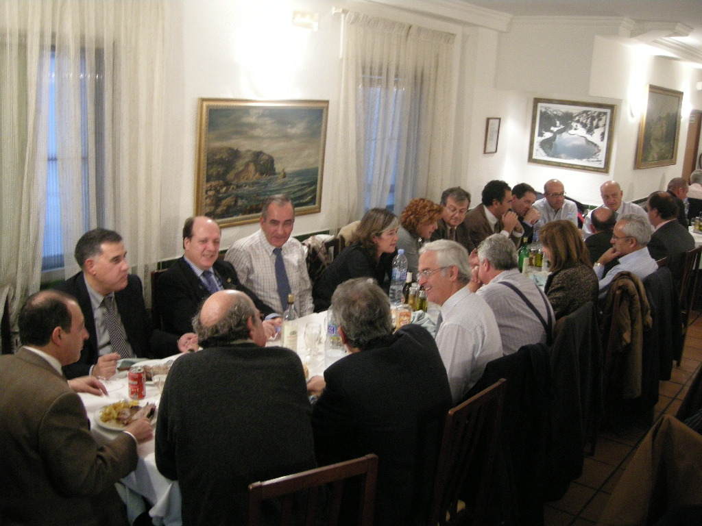 El pasado viernes 25 noviembre, se celebró la cena anual en el Hotel Wellington, con la asistencia de más de 30 compañeros ver relación de asistentes. Un nutrido grupo de parejas asistió igualmente al encuentro. Se leyeron las notas de disculpa de otros 12 compañeros que no pudieron asistir. En el curso de la sesión se tuvo la oportunidad de visionar el nuevo diseño de la página web, así como las fotos de la visita que esta misma tarde se había organizado a las obras, ya casi terminadas, de la Nueva Terminal T4 del Aeropuerto de Madrid-Barajas.