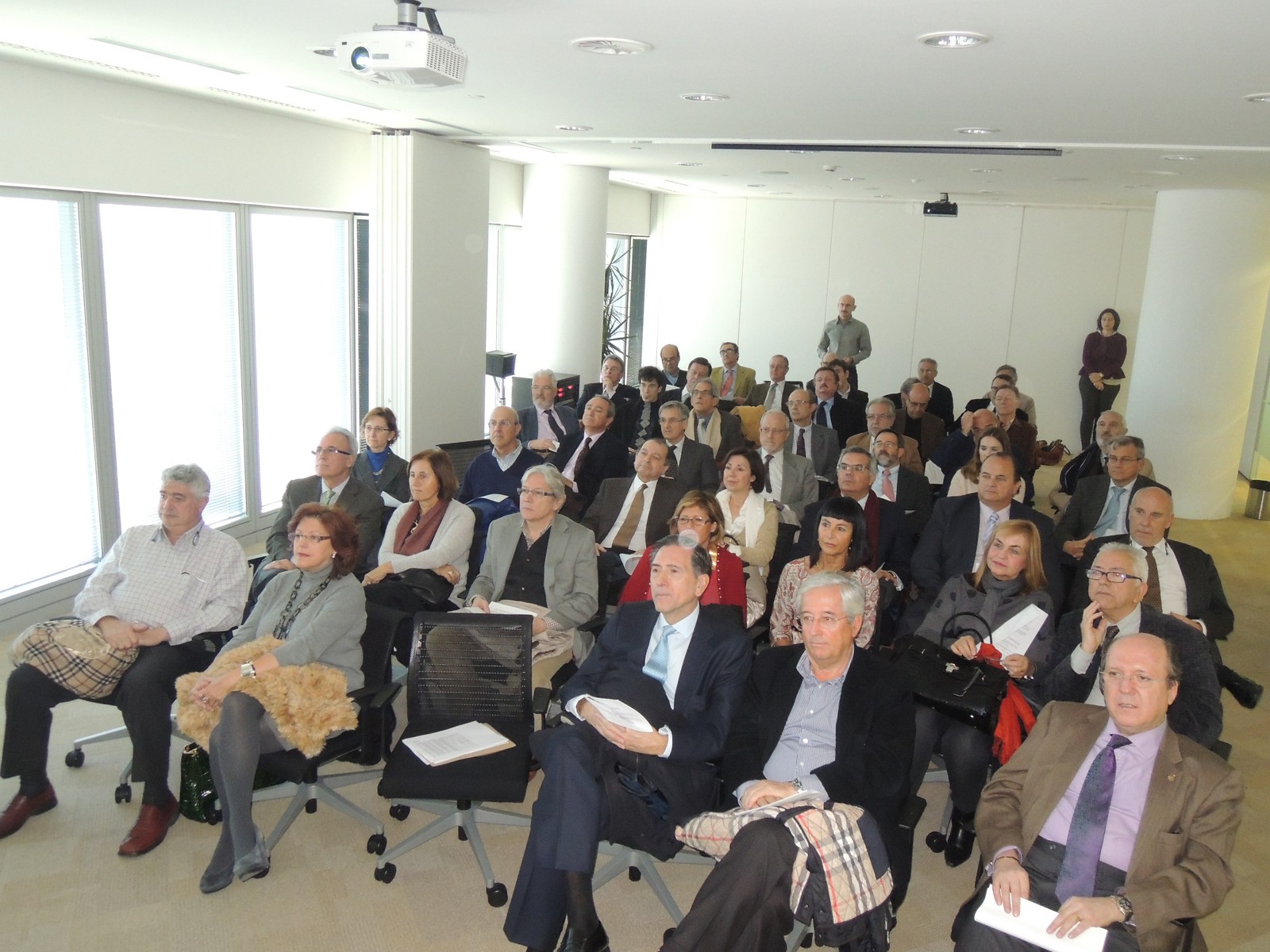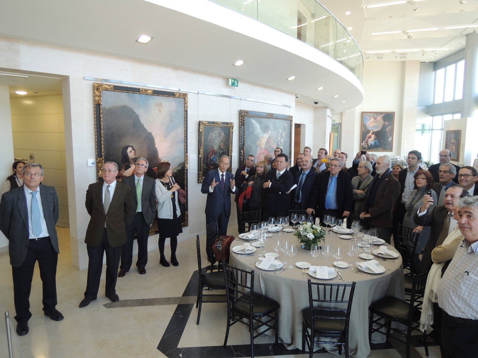 La Visita Profesional a Torre Espacio se realizó el pasado viernes 22 de noviembre. Después de una detallada visita de la torre de oficinas y sus instalaciones complementarias (ver foto), los 49 asistentes (Ver lista asistentes) tuvieron la oportunidad de ser recibidos por Juan Miguel Villar Mir en la planta 51 dónde presentó las magníficas muestras de pintura clásica española que tiene allí expuestas (ver foto), y ofreció un muy cordial almuerzo, en el curso del cual se anunción la entrega por parte de la Promoción de una imagen de Santo Domingo de la Calzada para la Capilla de Torre Espacio. Ver galería fotográfica.