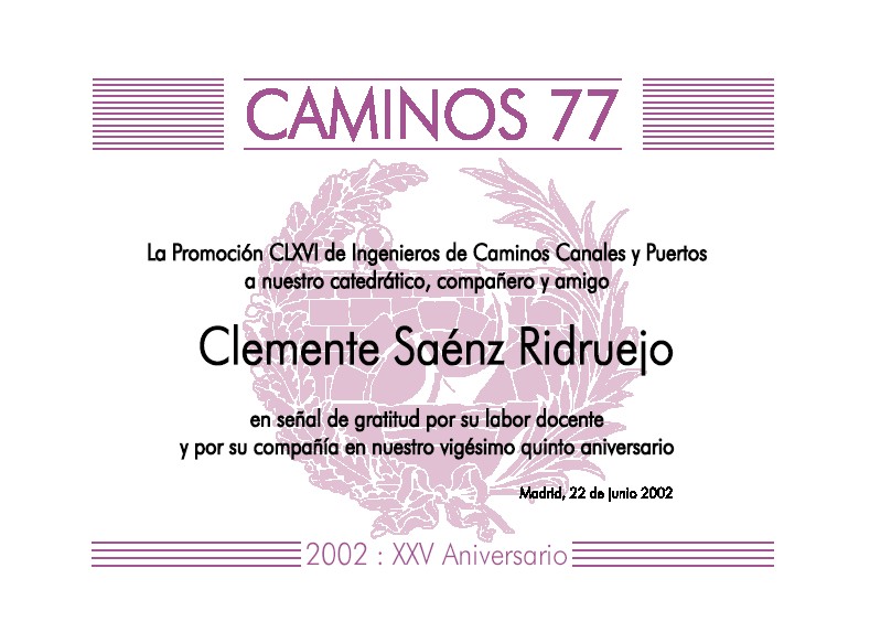 Fallece en Madrid Clemente Sáenz Ridruejo, catedrático y amigo de la Promoción, al que homenajeamos en nuestro XXV Aniversario. Ver diploma . Nuestro compañero Juan Guillamón glosa su personalidad. Ver texto
