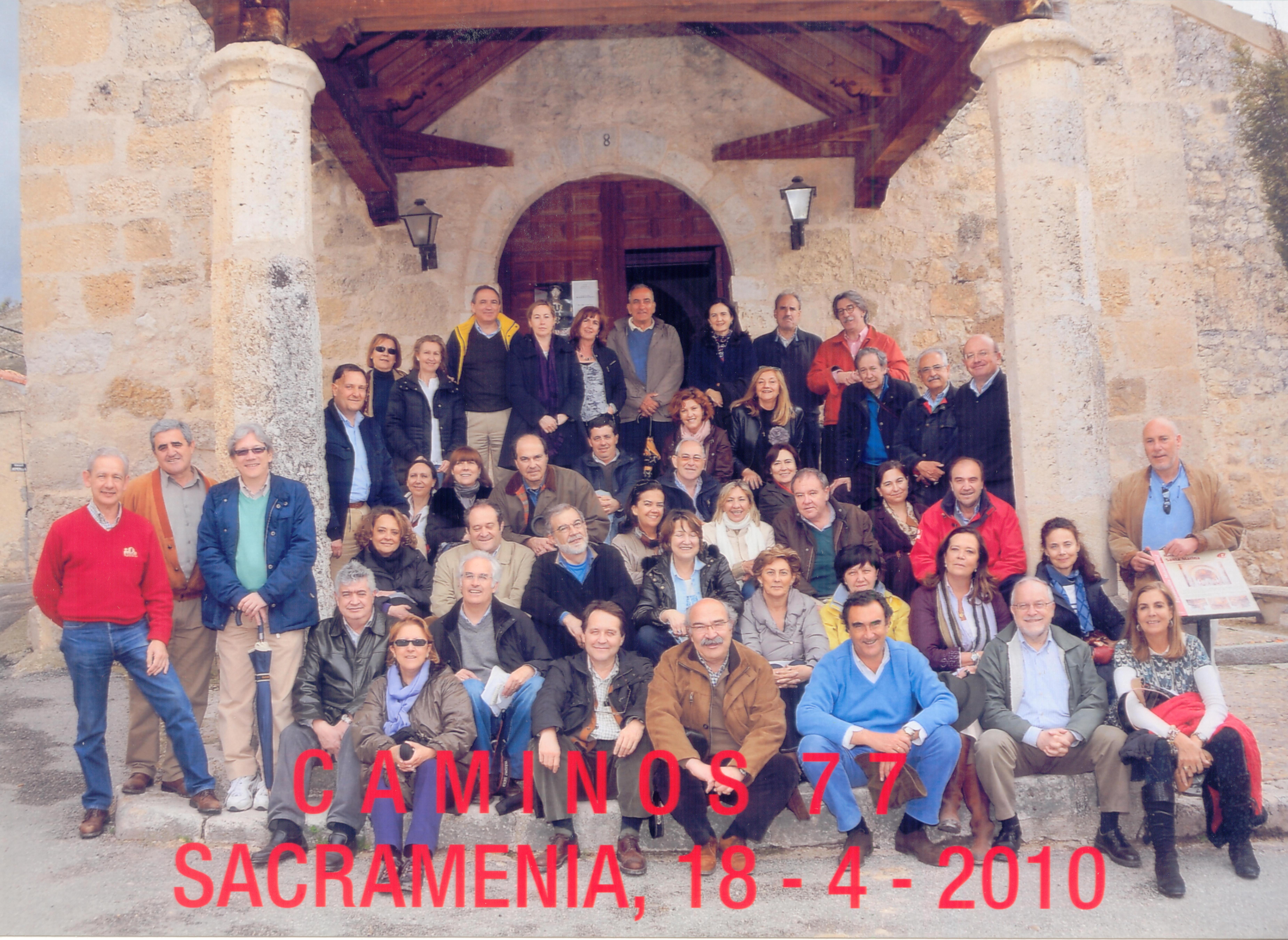 Los pasados días 17 y 18 de abril se realizó con un gran éxito de convocatoria el Viaje Anual de Caminos 77. Esta vez el grupo visitó la Ribera del Duero, las Hoces del Duratón y Sacramenia. Un total de 50 personas entre compañeros y cónyuges(ver lista asistentes), recorrieron las Bodegas Protos, dónde cataron los afamados vinos y probaron el espléndido lechazo de las tierras del compañero Manuel Sanz Hospital, Sacramenia, dónde se realizó la foto oficial del viaje (Descarga fichero alta resolución). Visitaron entre otros lugares, una de las joyas del Císter español, el Monasterio de Santa María de Valbuena y también hubo tiempo para conocer de la mano del compañero Santiago Peraita Lechosa, Director por parte de la Junta de Castilla y León, las obras de la nueva sede del Consejo Regulador de la DO Ribera del Duero en Roa.